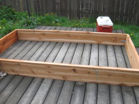 Mike went to the lumber yard and Lowe’s to buy materials, and spent hours outside on Saturday building the frames and preparing the garden plot. Next: to fill the plots with dirt and compost. And of course plants!