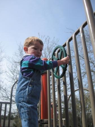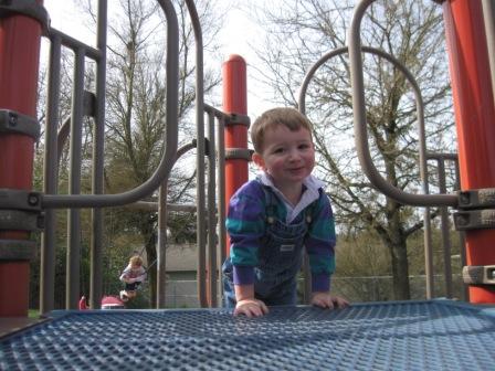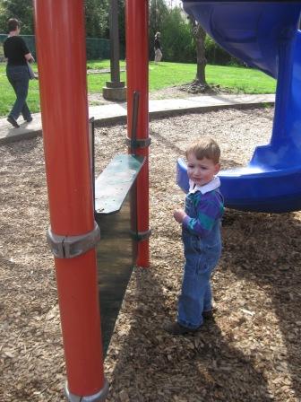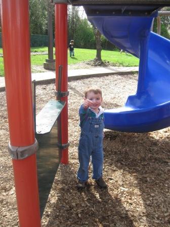 Here he is at the Multnomah Art Center playground last week…while Mike and Kieran were doing a cleanup Gabriel Park activity with the kindergarten class…