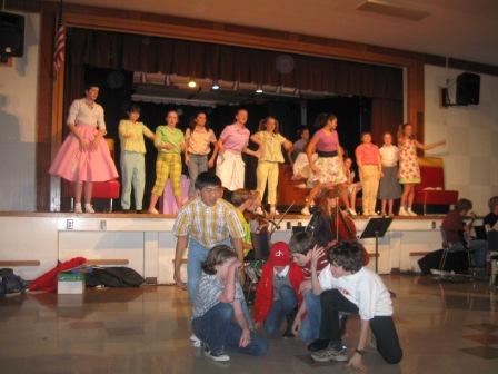 So they had to improvise their staging and choreography during the dress rehearsal while the handy dads reinforced the platforms in the back of the cafeteria (with the background noise of drills and hammers going during the show!).