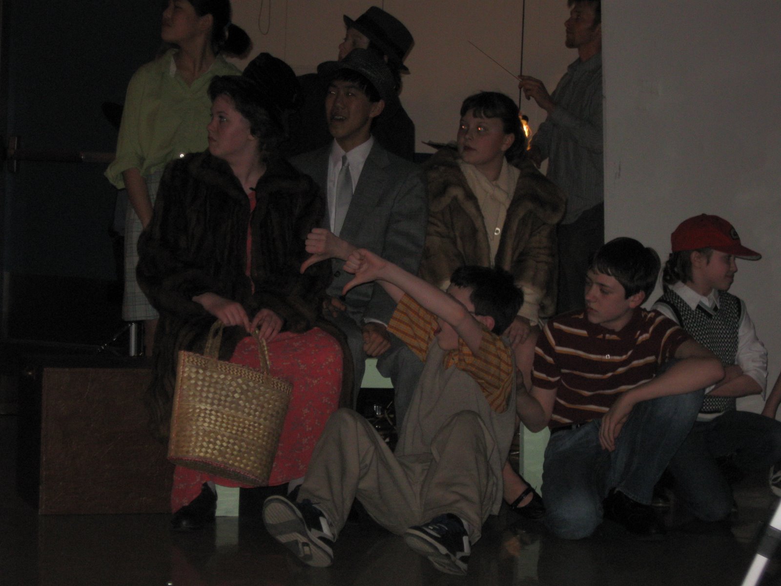 The director called the dress rehearsal quits in the middle of the second act, because the kids all looked tired out and discouraged. With the delay getting the dress rehearsal started, the delayed transitions between scenes, and all the unforeseen circumstances, it was late by that time. She gave them an encouraging pep talk at the end.
