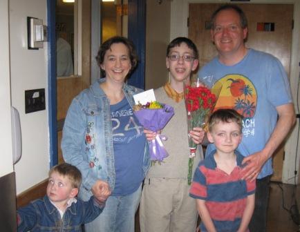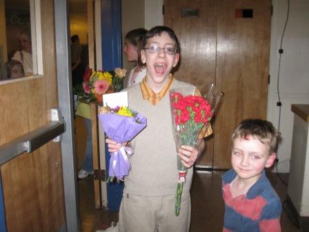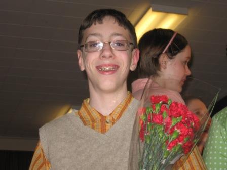 This is an ambitious play for a middle school. We sat near Andrea’s mom and grandmother tonight, and after the play was over they asked us whether we had a child in the play. When we told them our son was Harvey Johnson, Andrea’s mom said “We were just saying that he was our favorite!!” Andrea, too, had lots of praise for Chris when we talked to her after the play. I’m so proud of him!
