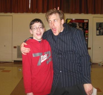 Chris with one of the leads (Austin, who played Alex), and a crew member