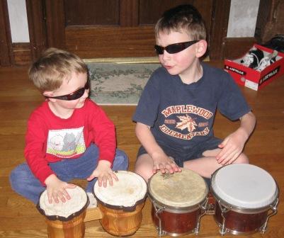 The two #1 fans of Bye Bye Birdie (not only did we attend all three performances and the dress rehearsal, but we also saw BBB at Cleveland High School last month, and the kids have watched the movie and listened to the soundtrack numerous times)…today I found them playing the bongos and wearing their sunglasses, and singing Bye Bye Birdie songs at the top of their lungs! (Don’t worry, Mom and Dad, we got video too!)