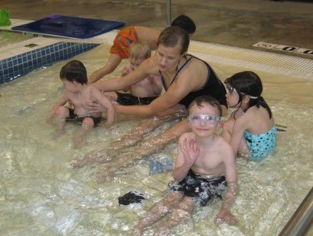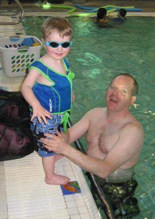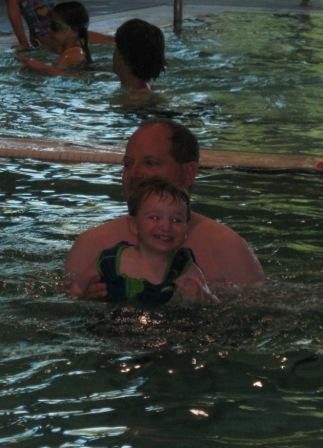 In an amazing feat of time management prowess, Mike has once again gotten all three boys enrolled in swimming lessons at the same time. We used to trade off going into the pool with Nicholas, but I found the water to be so cold I wasn’t really enjoying it much…so I asked Mike if he minded going in the pool instead. He doesn’t seem to. Chris is in the lap pool, while the younger ones are in the kids’ pool, so I spend my time swiveling back and forth watching them.