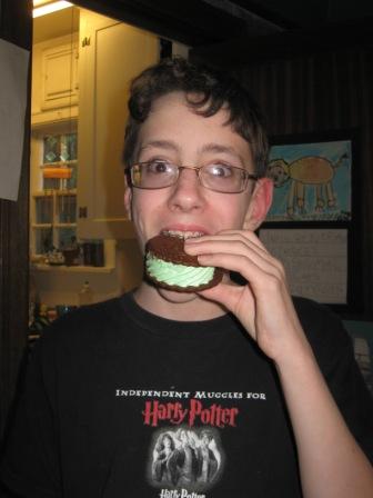 We tried out two different products: Vanilla and Caramel Dippers (for my wheat-free hubby) and Mint Ice Cream Sandwiches. The kids and I have always loved ice cream sandwiches; in fact last week at Powell’s I bought some ice cream sandwich molds so we could try to make some wheat-free ones ourselves.