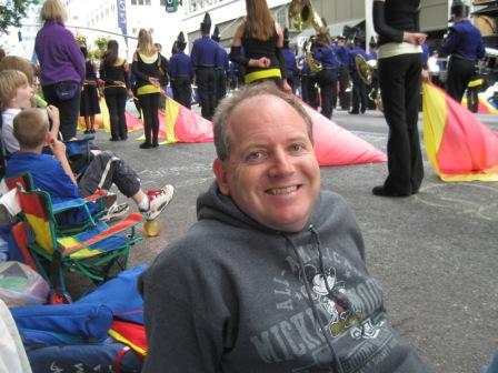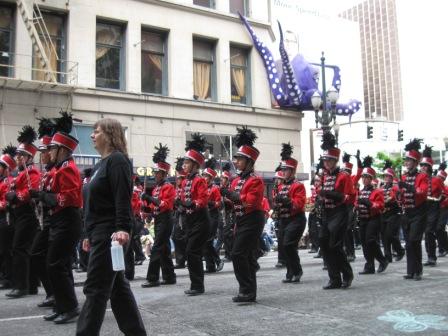 The One More Time Around Again Marching Band is always a huge hit at the parade–they are made up of adults who played, cheered, or flag twirled in their high school marching bands. And they are HUGE. They make me wish I had been in a marching band when I was younger. Alas, I only played string instruments. I’d have to be in the Philadelphia Mummers band!