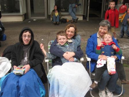 The rain stayed away, mostly, and we enjoyed the Rose Parade last Saturday. We are grateful to our friend Charlene, who we met through Precious Beginnings (our nonprofit parent support group for NICU families)…she and her friend have been reserving space to watch the parade for years now. They used to duct tape a space on the sidewalk before the city outlawed that practice. Last weekend they got up early and found a nice spot at their usual corner. This year Charlene did the walk before the parade with her two kids and their cousins.