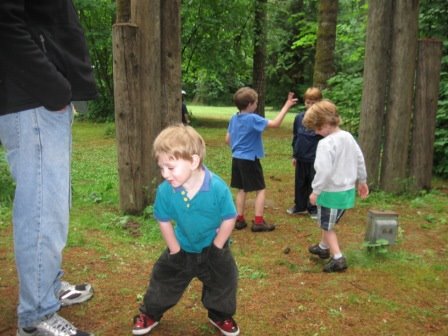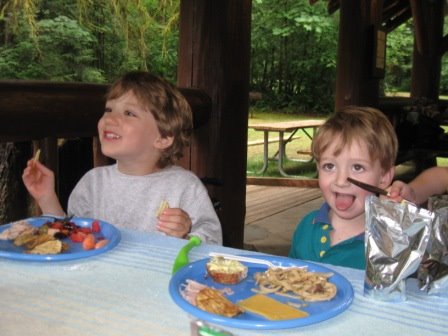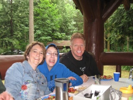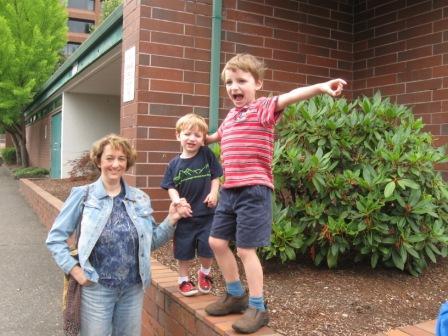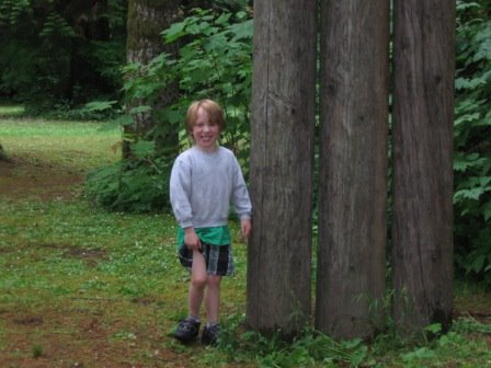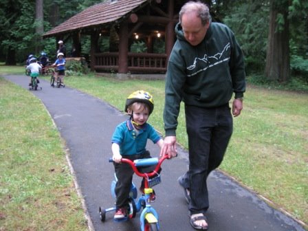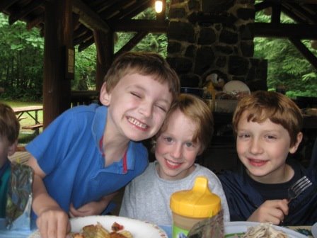 Sunday afternoon we drove up north on I-5, halfway to Tacoma, to the Lewis & Clark state park. When the weather is decent, we like to meet my sister Nadine and her family there for the afternoon. I just discovered that it’s one of the last major strands of old-growth forest in the state of Washington (probably why I like it so much!). We were celebrating my wonderful brother-in-law David’s birthday, along with Nadine & David’s and my parents’ anniversaries. We had a picnic, and the boys had a great time tearing around on their bikes.
