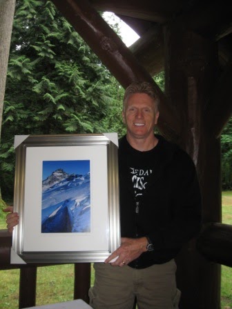 David with the photo of Mt. Rainier we gave him…David has expressed interest in climbing Mt. Rainier, along with getting another motorcycle, both of which Nadine has given him permission to do…when he is 95!