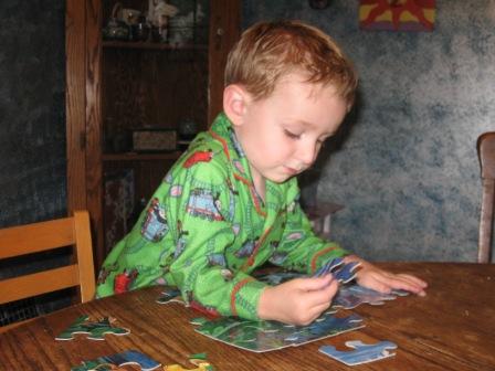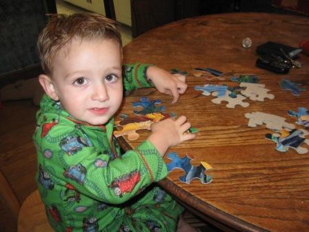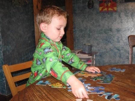 I think we have a family puzzle genius. My almost-3-year-old has become obsessed with puzzles. He loves to go visit his grandparents, because they have a large collection of cardboard puzzles. He’s moved on from the toddler wooden puzzles and likes the more advanced ones.