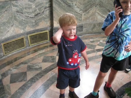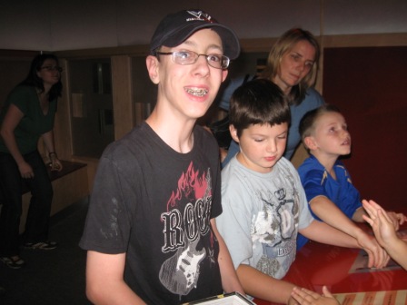 Our first full day in Toronto was, unfortunately, a rainy Saturday. (We had strange weather while we were visiting–it wasn’t the trademark hot and humid August.) We, along with every other family in the Toronto metropolitan area, hit the wonderful Ontario Science Centre. Toronto has many great museums, including the Royal Ontario Museum and the Bata Shoe Museum, but we decided to go with the family-friendly freebie (we got in free because of the reciprocal relationship among science museums in the U.S. and our OMSI pass). They had a special focus on the science of food, and Chris’ highlight of the day was being in the audience for a game show called “Family Food.” We also observed a demonstration of scientists making organic and non-organic butter, followed by a taste test (see Nicholas below).