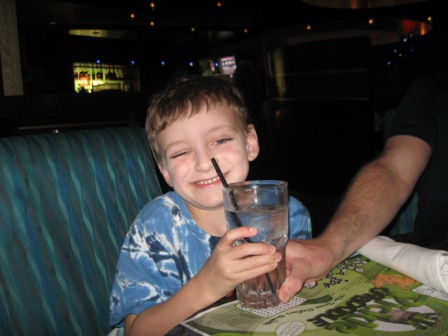 I lucked out, because I ordered a raspberry margarita…and the waiter brought my drink, but it didn’t look (or taste) right. He returned five minutes later and asked me if I’d taken a sip. I said yes, and he whipped it away and said he’d inadvertently switched drinks with another table. I asked whether I could keep it (isn’t that brazen of me!?), since I figured he was going to have to dump it. As typical with these types of restaurants, it wasn’t very alcoholic…good thing with the size of the drinks…my raspberry margarita was much better than the blackberry pina colada. I always prefer tarter drinks…(and I did give Mike part of it!)