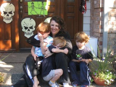 The kids indulged in lots of playing in parks, riding bikes, and celebrating Halloween a bit early. Chris’ high point was a trip to Border’s after all the little boys had gone to sleep! Nadine had made an outing to Michael’s, where she purchased all sorts of fun Halloween crafts. Our nephews had a CD of silly Halloween songs, and the kids have become obsessed with “The Monster Mash” in particular–Nicholas in particular is hilarious singing it with his little accent! When we returned home, I discovered this tool that allows you to personalize the Monster Mash with your own faces–check it out!