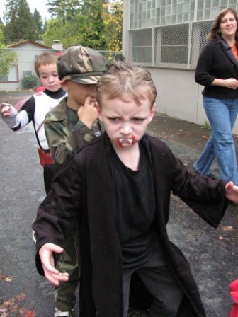 At any rate, Kieran doesn’t know how lucky he is that he gets to celebrate Halloween at school. Many of the schools in the Puget Sound area, including the Puyallup school where my nephews go and the Federal Way schools where my brother-in-law teach, do not allow children to wear their costumes to school or have Halloween parties.
