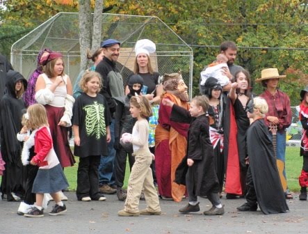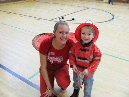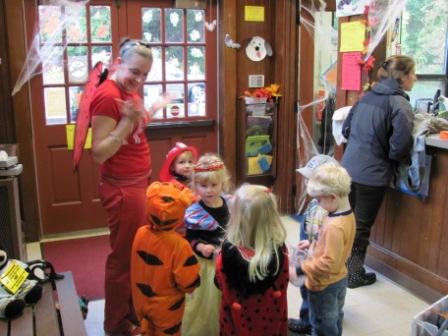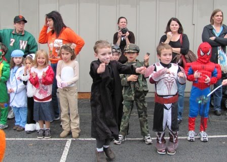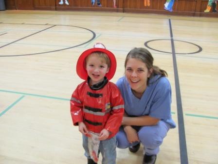 Nick’s festivities came first on Thursday, when he wore a costume to school and had a little party and parade with his four classmates. He has a teacher-student ratio of 2:5! (He’s in a class for 2-1/2-year-olds because he missed the September 1 cutoff by 3 days.)