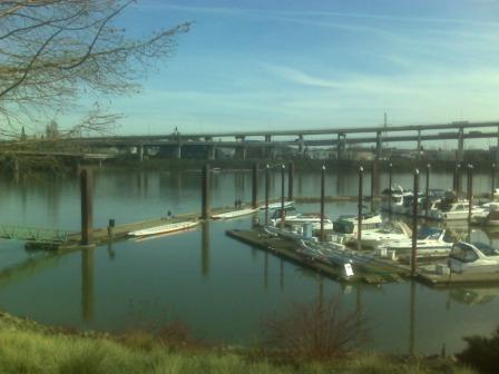 My office is very close to the waterfront–it takes just 5 to 10 minutes to get there, depending on the route. Today I put on my iPod headphones and walked down to Riverplace and out onto the river, and then looped around and circled back to the office by another route. It was a glorious walk, and lots of Portlanders were out and about enjoying our early spring weather.