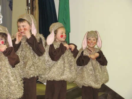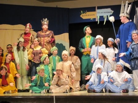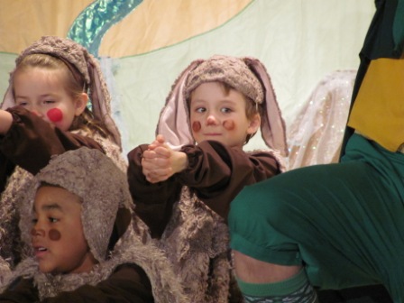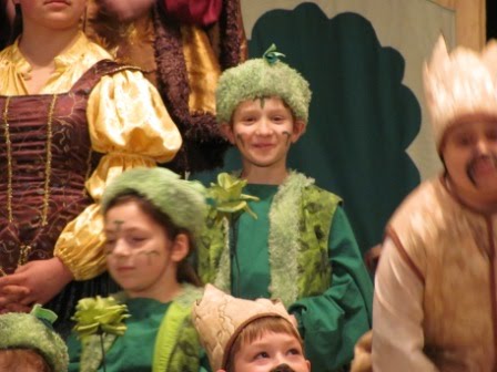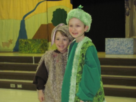 We began spring break by journeying up to Puyallup on Friday evening to spend time with my sister and her family. Two of my nephews were appearing in a play at their school engineered by the amazing Missoula Children’s Theater. Their touring group goes into schools and conducts auditions and produces plays–within one week! They bring all the costumes, sets, etc. In this case, they had just two adults to direct a cast of about 50. We were amazed at what they did in such a short amount of time. It was a VERY cute, fairly elaborate, musical 1-hour show.