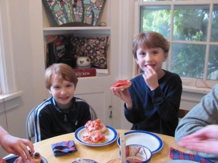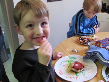 Kieran was born a day after my dad’s birthday, so we celebrated their joint birthdays this weekend with my sister and her family. The kids made do-it-yourself English muffin pizzas, while the adults had my special chicken mulligatawny.