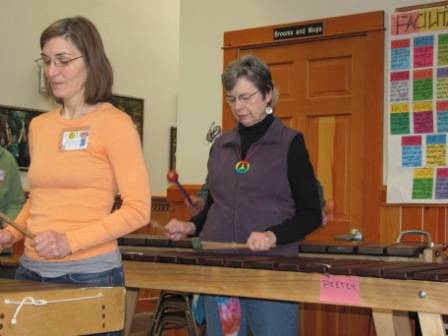 After the concert we did some line dancing to 60s music (including The Hustle!). The next morning after packing, cleanup, and brunch, we had one final session–and I chose beginning marimba. Such a blast! It was the first time I’d ever tried my hand at the marimba, and I think I could really get addicted to it. It’s trance inducing!