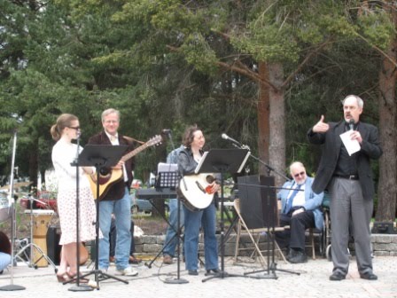 Then our band, Consorting with Papists, played while people ate lunch. I’m going to have to fire my photographer and find another one: he took photos of the labyrinth blessing, and after the blessing, but none of band performing. (Sorry honey–you’re an amazing husband but a bit lacking in the photographer category–I remind him of when he traveled to Australia for his brother’s wedding under strict directions to take lots of photos and video, and came back with hardly anything.)