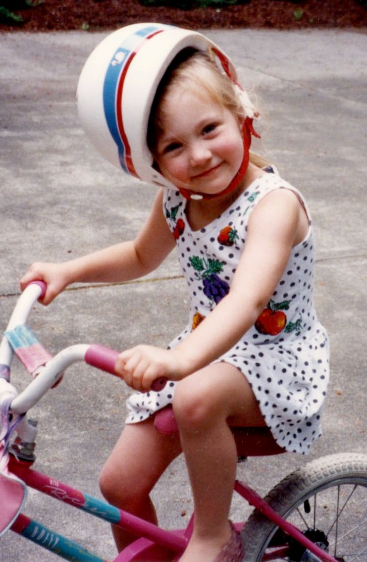 And here she is on her bike, by now a big sister to her brother David: