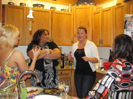 Chatting over cocktails in the kitchen–Sam, her friends, and Herrera (Nadine’s dear friend and her kids’ nanny)