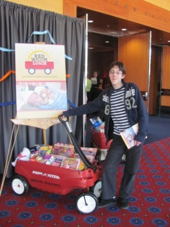 And after the lunch (I found it deliciously ironic that Chris ate two desserts after all those horrific first months when we couldn’t get him to eat!!) with the famous “red wagons.” They use red wagons to take sick children on walks throughout the hospital and out to the Children’s Garden.