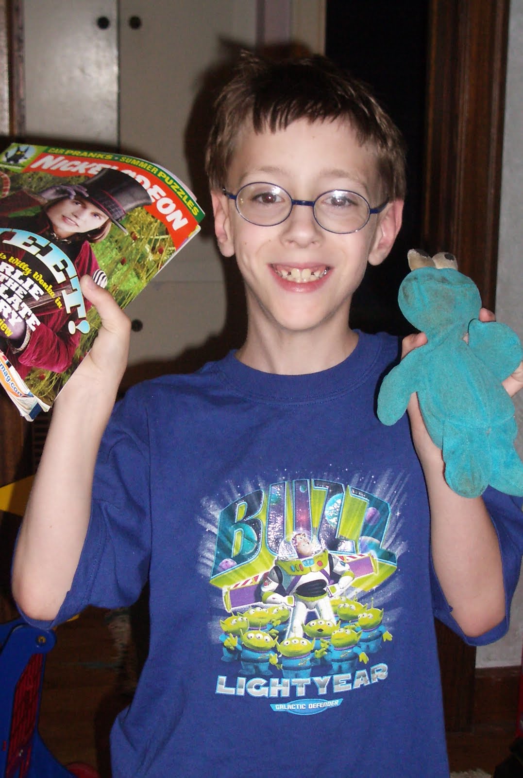 Unfortunately, Mike told him once that if Cookie were exposed to water, he would “explode.” I think he wanted to deter him from putting him in the bath–I can’t exactly remember why he said that. But as a consequence, Chris has been terrified to let us try to wash Cookie in any way. Here’s Chris with Cookie many years ago: