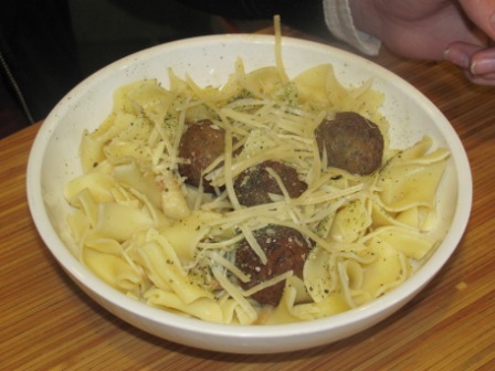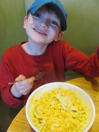 And my children with their nonveggie meals! Chris had buttered noodles and meatballs, and Kieran and Nick had the classic mac and cheese.
