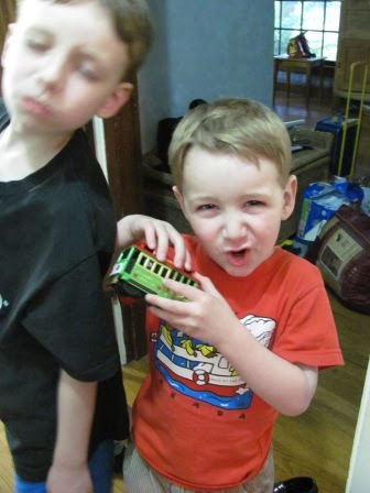 Last weekend after we returned from San Francisco, we kicked into Father’s Day festivities. Here are Kieran and Nick with some of the token souvenirs we brought back for them. Nick got a cable car, and Kieran got some lovely teeth: