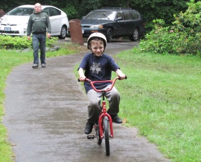 After learning how to ride earlier this spring, Kieran had a crisis of confidence and hasn’t rode for months. Last Sunday he finally got back on and had success!