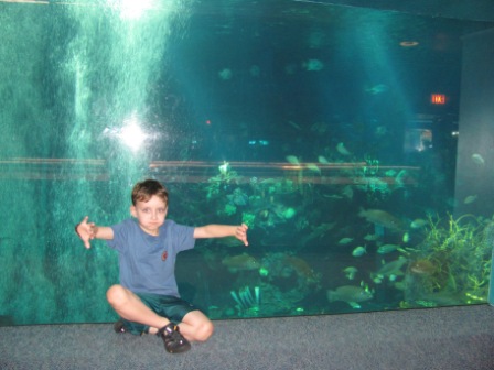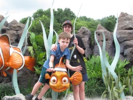 We enjoyed “The Seas,” where we rode a Finding Nemo ride, enjoyed looking at the massive aquarium, and went to “Turtle Talk with Crush.” Turtle Talk is an amazing interactive attraction where you see Crush on the screen talking directly to the audience. The technology is amazing! Kieran–our star–of course was immediately seen by Crush, and he featured heavily in the show. Kieran often seems to find a way to get noticed!