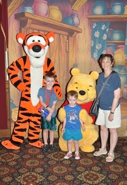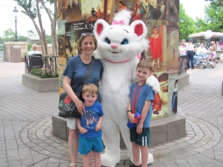 Then the next day she spent with her sister-in-law, and we headed for EPCOT. The last time we were in EPCOT was 1995, when Mike and I took a pre-kids Disney trip. That time we spent two days in EPCOT, which is a much easier way to do it. EPCOT is HUGE. We covered much of the park in 1 day, with three kids. We ought to receive a medal for that!