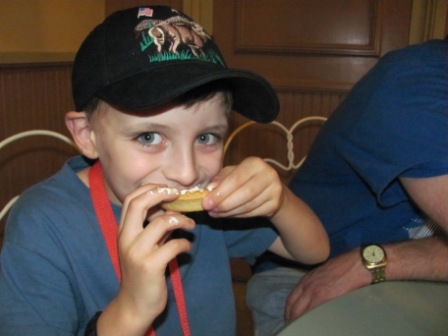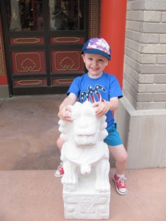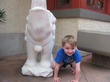 Next we went to “The Land,” where we went on “Soarin’,” a simulated hang glider tour over California. I love that ride–it’s also at Disneyland. We just happened to measure Nicholas before we went on the ride–I felt sorry for him because he wasn’t tall enough to go on lots of rides–and we discovered that he is just barely 40 inches tall and met the minimum height! It was the first of many rides he went on and loved.