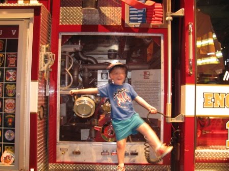 Nicholas was very patient again, waiting while we went on these rides, but then we took him into Innoventions, where they had a great fire safety game and exhibit called “Where’s the Fire?” As our little firefighter-loving man, he was thrilled. Sorry for the blurry photos–he was moving too quickly!