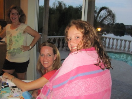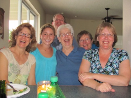 Our second-to-last day in Florida we went to Mike’s cousin Tammy’s house for dinner and a reunion with his aunt, cousins, and families. Here are Mike and Olga with the Florida contingent of women:
