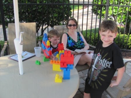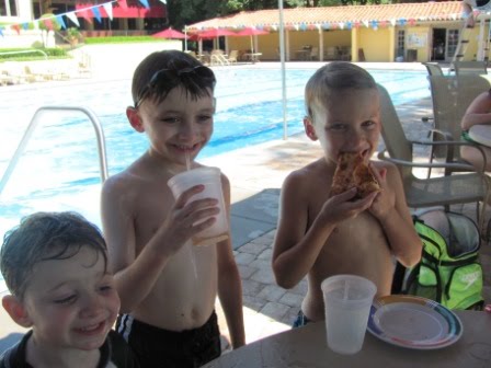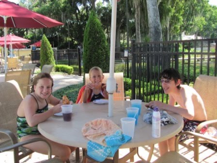 After Islands of Adventure, we had a break day to hang out with Mike’s cousin’s kids. The kids swam, played, and went boating at their racquet club. I think seeing their second cousins swim like fish inspired Kieran and our Nicholas. Yesterday Mike took the kids swimming, and both younger kids were much more adventurous in the water than previously.