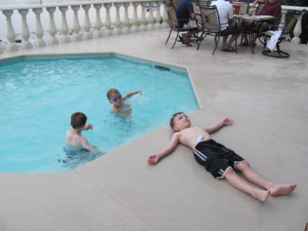 More pool time for the boys–Kieran meditating??