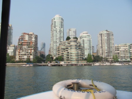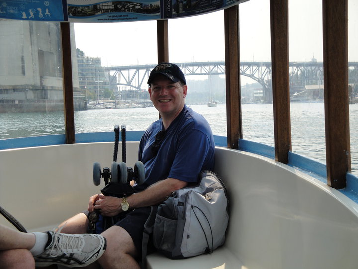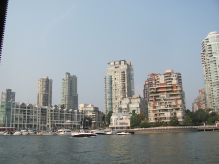 The most charming way to reach Granville Island is by boat, even though one can technically drive or walk there. We parked in Vanier Park near the maritime museum and took the miniferry, which is described as a “bathtub boat.” (They are very small!) Mike was a bit worried before embarking because he is prone to seasickness in small boats, but he did fine. The little boats were not cheap (like everything else in Vancouver), but they were fun!