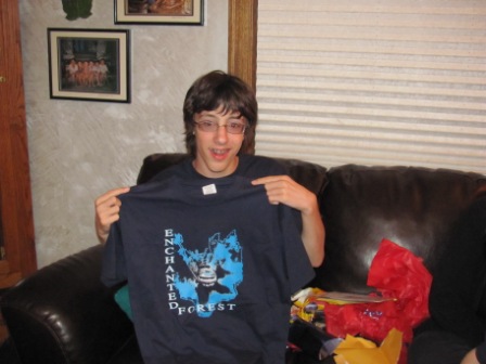 Nadine and David and family gave Chris his own Enchanted Forest t-shirt–he was thrilled.