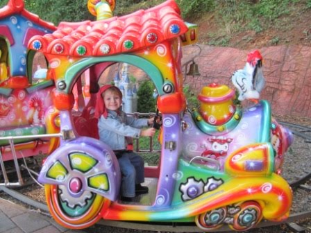 Nick insisted on being in the very first car of the train, so he could “steer”!