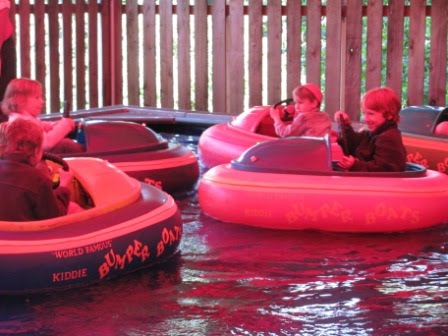 Nick riding the bumper boats with his cousins