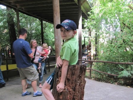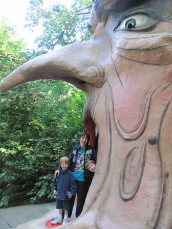Nicholas turns four this Saturday (over Labor Day weekend), and we began celebrating his birthday (in true G-G style) last weekend with a trip to the Enchanted Forest. We’ve been making regular trips there since Chris was very young. It’s getting shabbier and kitschier each year, and just about as far away from Disney as one can get. Even though they’ve seen the same old nursery rhyme dioramas and figures year after year, the kids still enjoy it–even the older ones. It was especially fun because they got to hang out with their cousins, aunt and uncle, and grandma, who arrived after we’d been there for an hour or so.