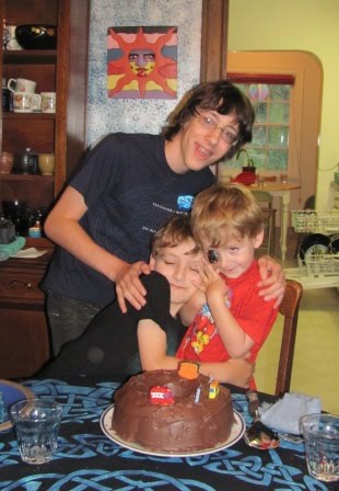 When my mom arrived and asked Nick to guess what she had brought him, she said “presents!” to which he expressed a disappointed “what about my chocolate cake?”