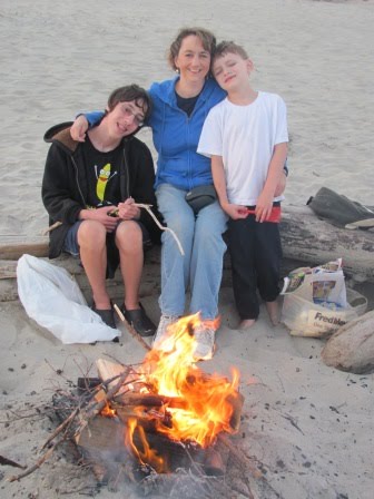 Thursday night we took to the beach for a lovely campfire at sunset. I had bought the makings for s’mores earlier, including two bars of expensive fair trade chocolate. Especially after reading Catching Fire over the weekend, I’m more determined than ever not to support child slave-produced chocolate.