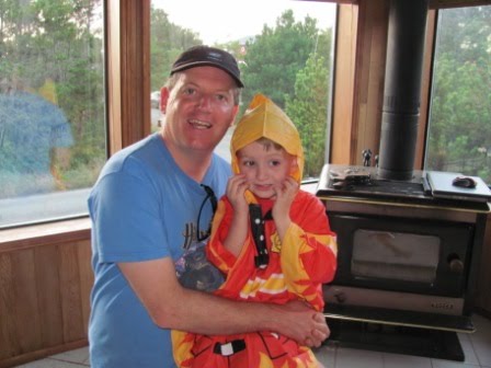 We also celebrated Nick’s birthday on Saturday–here he is modeling his new firefighter raincoat from his aunt and uncle in England: