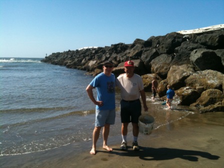 We ran into a family friend, Bruce, who was harvesting mussels off the jetty. Bruce and his wife Sue have had a house a few blocks from my parents for years. Before my parents built their house, we would rent Bruce and Sue’s house–for family weekends, church youth group retreats, etc. It’s always nice to run into them in Nedonna Beach.