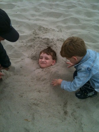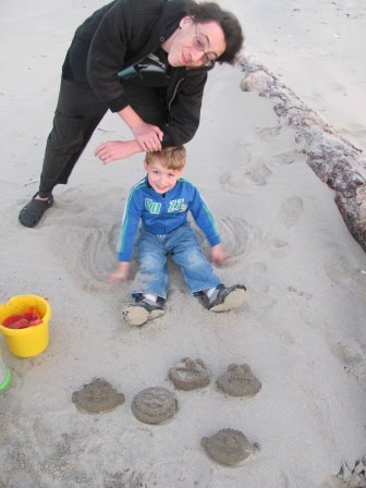 Our fun weekend at the beach was full of lots of reading, garage saling (see previous posts), blackberry picking, bike riding (we finally used our bike rack, which we bought a couple of years ago!), beach combing, a trip to Flamingo Jim’s (a “veritable temple of kitsch” and a perfect place for Kieran to buy rocks), playing pirates and Toy Story, and playing Guitar Hero and Beatles Rock Band: