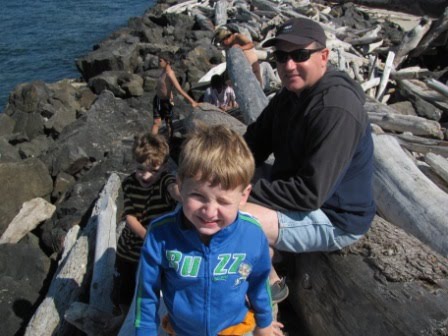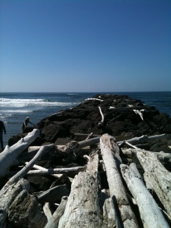 This is the famous jetty in Nedonna Beach–it juts out into the ocean, with Nehalem Bay on the other side. Our family has been either (1) walking to and from, or (2) climbing on the jetty since I was a kid. I remember being on the jetty as a college student with my younger brother in the middle of a storm–beautiful and exciting!!