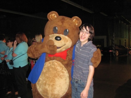 Nick with Fred Bear (he’s not shy with large stuffed creatures!)